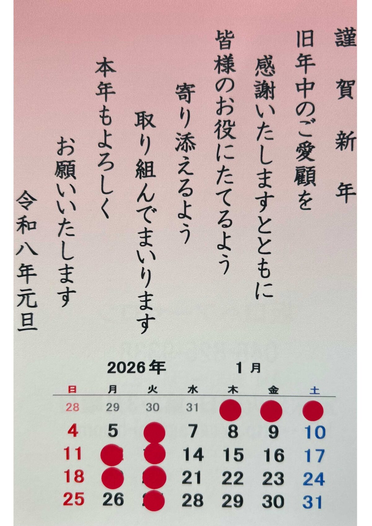 旧年中のご愛顧を感謝いたしますとともに